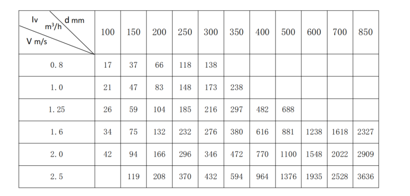 管徑mm | 100 | 150 | 200 | 250 | 300 | 350 | 400 | 500 | 600 | 700 | 850 |