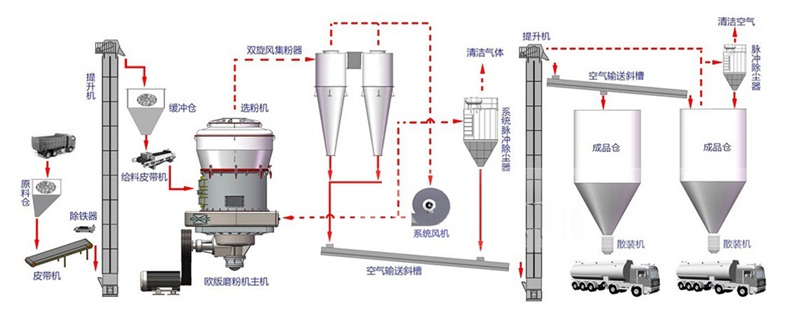 歐版磨制備石灰石粉工藝流程