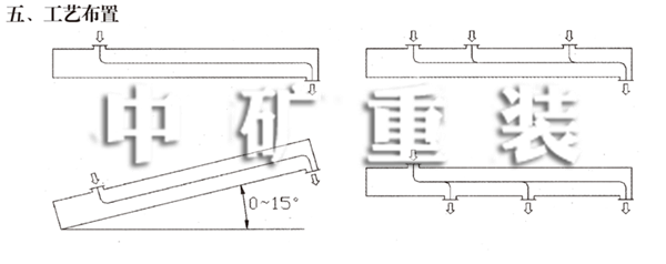 選定機型后,可根據輸送量,輸送長度和工藝布置狀況(參照表5 -12)選擇動力和減速機速比及 裝配型式。