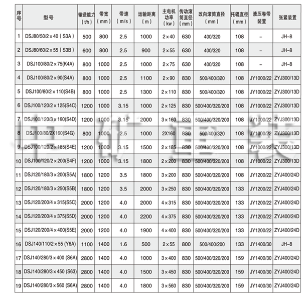 DSJ型可伸縮帶式輸送機(jī)主要用于煤礦井下綜采、高檔普采或一般普采工作面的順槽運(yùn)輸,也可用于巷道掘進(jìn)運(yùn)輸。其同時(shí)也可用于其他礦山、化工、冶金和港口碼頭等運(yùn)距變化的場(chǎng)合進(jìn)行物料運(yùn)送。其主要特點(diǎn)是機(jī)尾可隨著工作面推移而自行移動(dòng),可延伸或收縮其運(yùn)送距離。輸送機(jī)結(jié)構(gòu)緊湊,可不設(shè)基礎(chǔ),可直接在巷道底板上鋪設(shè),也可懸吊在巷道的頂板上,機(jī)架輕巧,機(jī)架間可不用螺栓聯(lián)結(jié),采用“E”形銷或彈性圓柱銷聯(lián)接,拆裝十丹方便。輸送帶采用整芯帶,用機(jī)械接頭聯(lián)結(jié)。若輸送能力和運(yùn)距較大時(shí),可配中間驅(qū)動(dòng)裝置來(lái)滿足物料輸送要求。其功能除具有可控的軟起動(dòng)、功率平衡和輸送帶張力自動(dòng)調(diào)控等以外,特別配置了嚴(yán)格的監(jiān)測(cè)、傳感系統(tǒng)和可靠的安全保護(hù)設(shè)施。